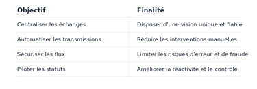 L’objectif n’est pas de masquer les contraintes bancaires, mais de les absorber dans un cadre unique et maîtrisé